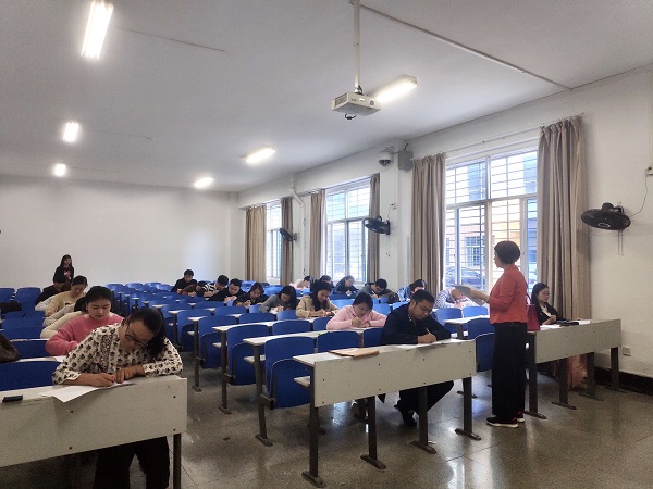 为扎实推进“不忘初心、牢记使命”的主题教育、落实党员同志的学习任务、了解全体党员的学习情况。11月12日下午2:30,金年会“不忘初心、牢记使命”主题教育应知应会知识测试分别在第一教学楼107、205、302、308、405、408六个教室进行。金年会党委书记周光明、院长禹旭才、教工党支部书记余蓉晖和土建艺学部辅导员徐恒霞监考。