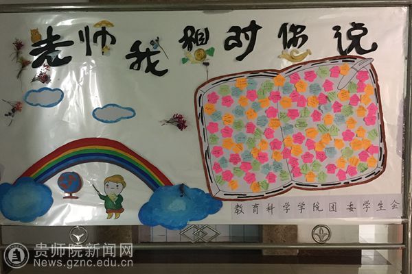 本网讯 为了迎接第33个教师节的到来,进一步弘扬尊师重教的良好风尚,让学生们在参与活动的过程中感恩老师的爱心,感恩老师的劳动,感恩老师的教诲。9月4日至8日,校团委组织全校各学院基层团委各个团支部通过制作教师节横幅标语、发送短信、送花、手工制作贺卡和蛋糕等方式,向老师表达亲切问候,在全校范围内烘托出浓厚的教师节氛围,大力弘扬尊师重教传统。