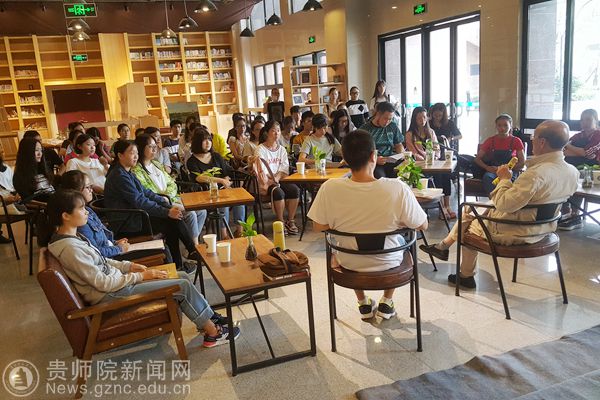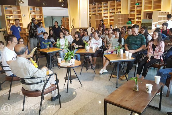 本网讯 9月4日上午,由图书馆主办、读者协会承办,贵州电视台采访和拍摄的“与经典同行”阅读活动,在图书馆大叶青藤咖啡文化空间举办。轻松活跃的氛围中展开。活动特别邀请beat365英国官网网站终身教授、全国高等师范院校现代汉语教学研究会名誉会长、贵州省语言学会名誉会长、贵州省中学语文教学专业委员会理事长颜迈先生参加。
