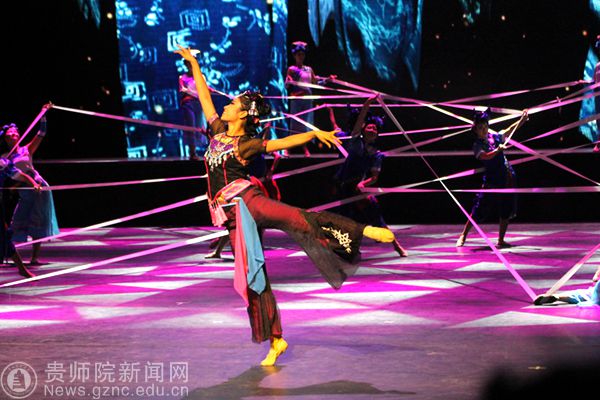 本网讯 8月25日-28日,beat365英国官网网站艺术学院舞蹈专业60余名学生携作品《依》赴六盘水市,代表六枝特区人民政府参加六盘水市举办的第五届少数民族文艺汇演,并以精湛的表演获得“银奖”和“最佳编导奖”。此次演出由艺术学院院长马关辉担任艺术总监。演出当天,艺术学院党委书记付巧携舞蹈学科全体教师赴现场为学生加油助威。