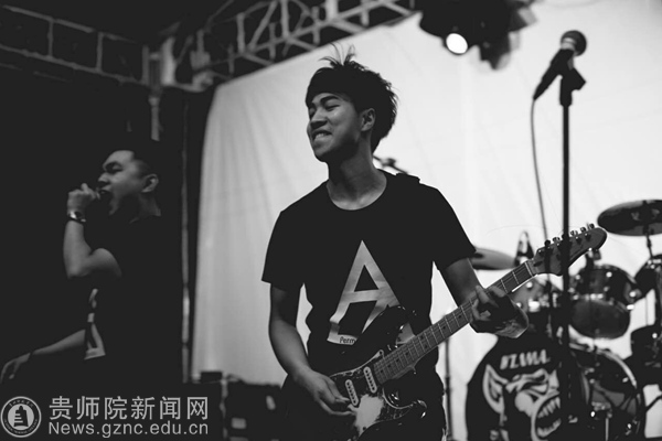 [该乐队现有7名成员:主唱蔡宇(13级音乐学)、刘巍(14级思想政治教育),贝斯手孙飞(13级音乐),吉他手王跃冀(14级音乐学)以及王安石(13级音乐学),鼓手秦瑞(11级音乐学),键盘手陈清圆(13级音乐学)]