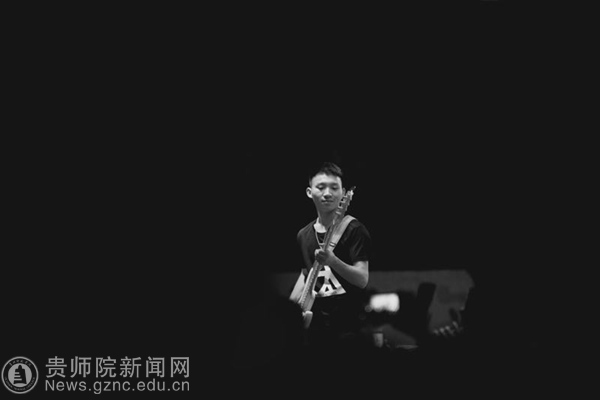 2014年10月,他们首次在历社学院的迎新晚会上“出道”了,虽然这次演出主唱也没有上台,乐队只是为历社学院的一位老师伴奏。孙飞说,这次的经历让他们难忘,也让他们收获了舞台经验,能够让乐队呈现更完美的演出。2015年后,玖典乐队迎来了他们的春天,许多学院的大型晚会开始向他们邀约表演。陈清圆说:“若是时间不冲突,我们都愿意去表演,毕竟刚开始我们很需要台上的经历来磨合,培养团队默契。”刘巍说,迄今让他们最难忘的一场表演还是2015年校迎新晚会,他还记得他们一共表演了两首歌曲——《我恨我痴心》和《像风一样自由》。