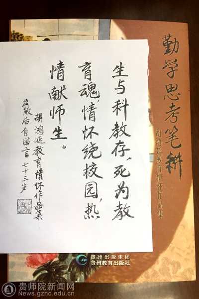 胡鸿延老师的著作《勤学思考笔耕——胡鸿延教育情怀作品集》(244千字),2016年12月由贵州出版集团、贵州教育出版社出版。该书收录作者自选之回忆录、诗歌、艺术鉴赏论文及部分书画作品,胡鸿延老师时值73岁高龄出版此书,老骥伏枥志在千里,充分彰显了他感人至深的教育情怀。