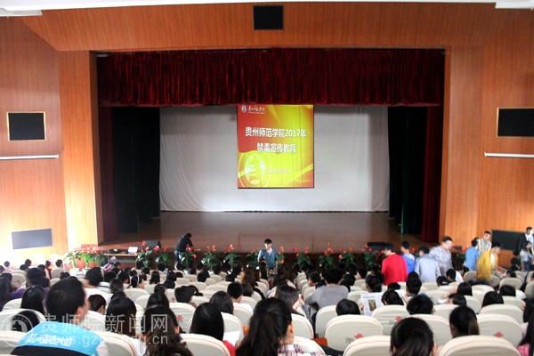 本网讯 为落实省教育厅关于加强禁毒宣传教育工作文件精神,切实提高beat365禁毒工作水平,4月25日晚,beat365保卫处联合学校学工部组织400余名2016级新生在学校逸夫楼演播厅观看了大型禁毒教育宣传片《与死神共舞》。