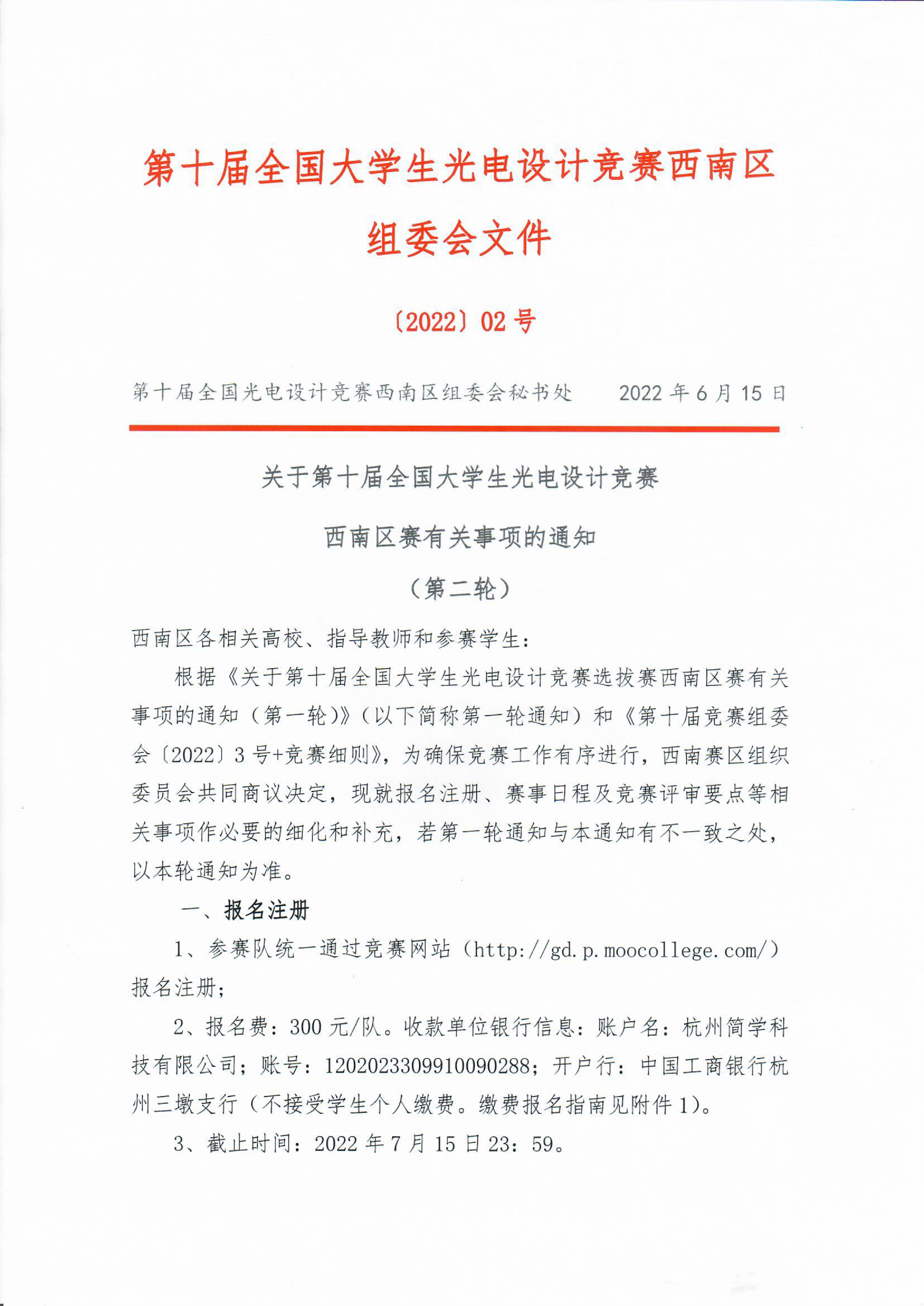 关于第十届全国大学生光电设计竞赛 西南区赛有关事项的通知 (第二轮)