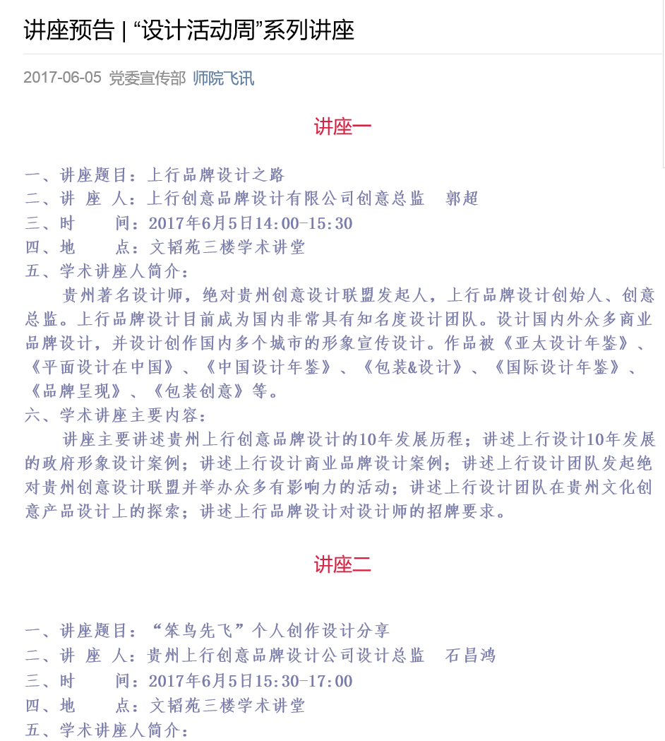 讲座预告 | “设计活动周”系列讲座