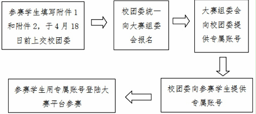 每个参赛学生仅限一位指导老师,参赛学生请填写学生信息表(附件1)和指导老师报名表(附件2)电子版,并于4月18日前,以学院为单位,发至校团委潘雯雨邮箱。