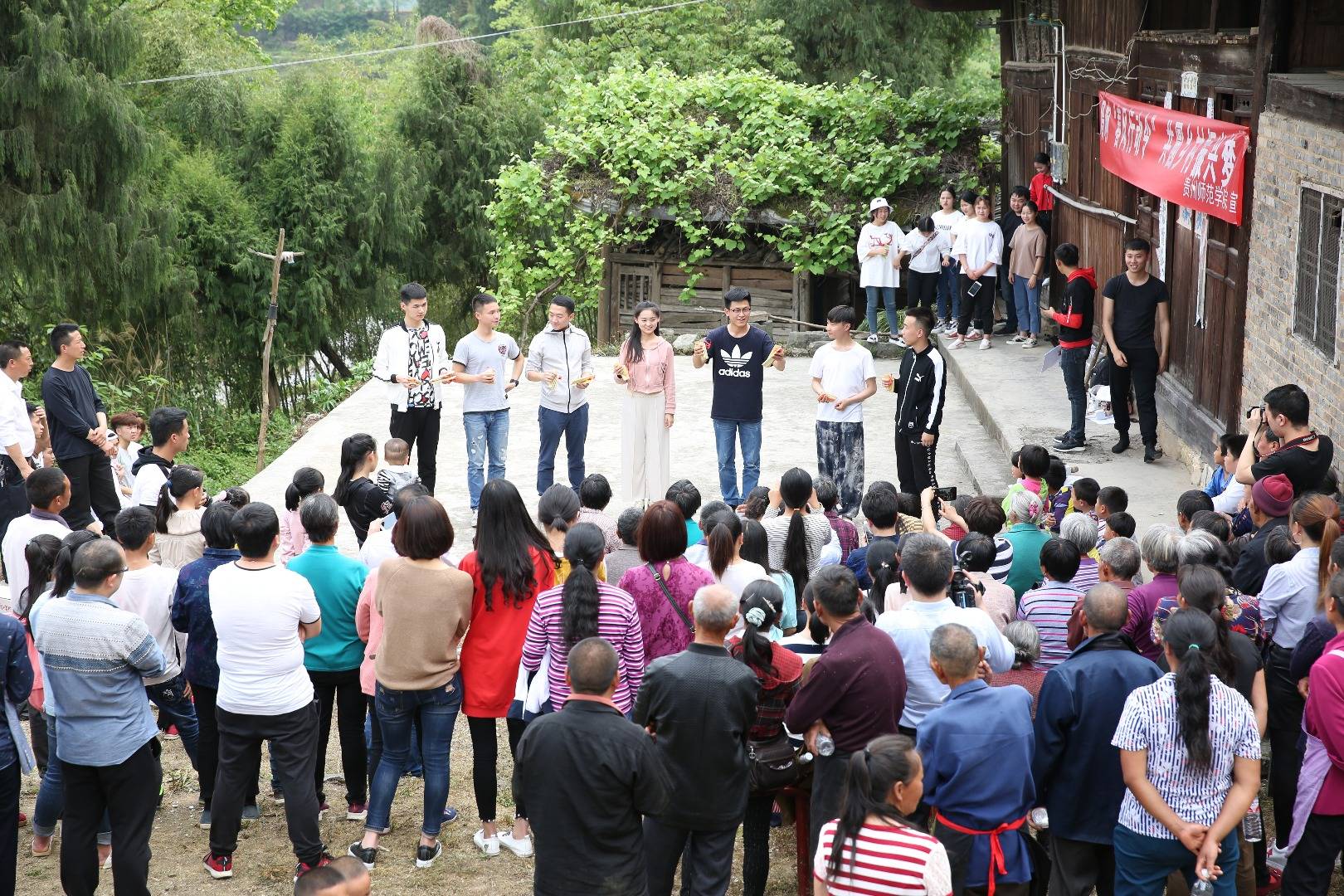 4月21——22日,由beat365英国官网网站校党委统一部署,艺术学院承办的"唱响春风行动令,共圆乡村振兴梦"——beat365英国官网网站"艺术之星"走进田间地头文艺演出活动在印江县成功开展。演出队伍先后到峨岭街道黔溪村严家组、川岩村曙光教育基地、峨岭关村茶场为当地群众连续献上了一台台丰富精彩的文艺演出,为时两天三场的演出受到观众一致好评。