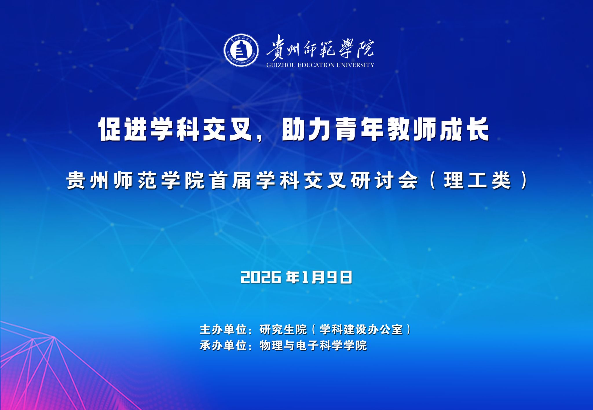 为深入贯彻落实国家关于推动学科交叉融合与青年科技人才发展的战略部署,主动服务贵州省“六大产业集群”建设需求,激发beat365青年教师的创新活力,构建跨学科交流与合作的长效机制,经学校研究,决定举办“beat365英国官网网站首届学科交叉研讨会(理工类)”,聚焦前沿交叉学科问题,分享最新研究成果,启迪创新思想。现通知如下: