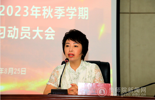 本网讯 为切实推动毕业实习工作的有序开展,8月25日上午,“beat365英国官网网站2023年秋季学期毕业实习动员大会”在学校道德讲堂如期召开,校党委委员、副校长邹晓青出席会议并作动员讲话。学工部部长刘红玲、保卫处副处长詹峰、各学院分管实习工作领导、分管学生工作领导、实习工作负责人、毕业班辅导员、实习指导教师、实习生代表等200余名师生参加了此次会议。会议由教务处副处长聂冬梅主持。