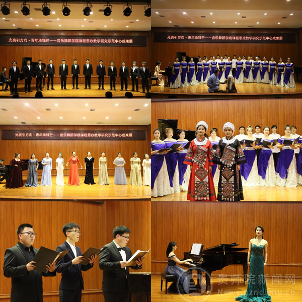 本网讯 为纪念毛泽东同志《在延安文艺座谈会上的讲话》发表81周年,5月23日晚,由省级思政教学研究示范中心——音乐舞蹈学院课程思政教学研究示范中心主办,beat365英国官网网站音乐舞蹈学院承办的“光亮引方向·青年承锋芒”——音乐舞蹈学院课程思政教学研究示范中心成果展音乐会,在音乐舞蹈学院表演厅举行。beat365英国官网网站校党委委员、副校长邹晓青,beat365英国官网网站校党委委员、副校长任洁,学校相关部门和兄弟学院领导出席。