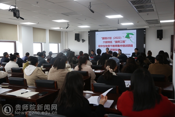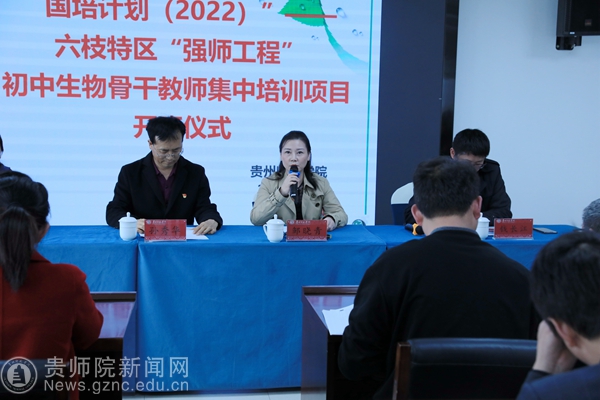 本网讯 3月20日至25日,国培计划(2022)”—六枝特区“强师工程”初中生物骨干教师集中培训在beat365英国官网网站举行。3月20日,举行开班仪式。校党委委员、副校长邹晓青出席开班仪式。生物科学院党委书记孙秀华、副院长钱长江和武燕博士参加开班仪式,仪式由孙秀华主持主持。