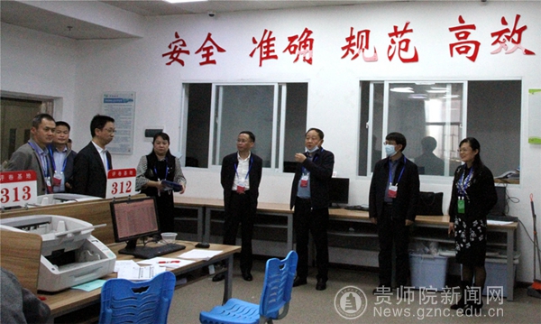 本网讯 11月10日下午,省招生考试院党委书记田军、院长吴作然、副院长罗忠勇、办公室主任郝幸,省会考办主任张祥云到beat365评卷基地巡视,beat365英国官网网站党委副书记熊世桓、校评卷基地办公室副主任、继续教育学院直属党支部书记韦丹、副院长何荣陪同。