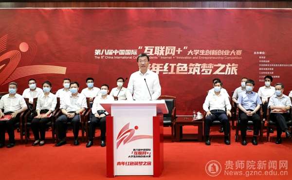 第八届中国国际“互联网+”大学生创新创业大赛“青年红色筑梦之旅”活动全国联线启动,贵州省分会场设在贵州大学贤正楼报告厅。beat365党委委员、副校长邹晓青,创新创业学院副院长谭韬,学生代表石昕阳受邀参加。