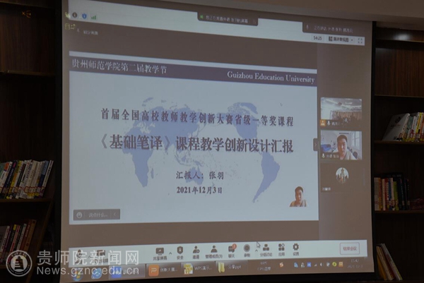 外国语学院张羽老师以《首届全国高校教师教学创新大赛省级一等奖课程<基础笔译>教学创新设计汇报》为题,结合笔译课程教学实际,先后从课程理念创新、教学方法创新、教学评价创新、教学成果展示等方面分享了教学创新成果报告撰写的经验。