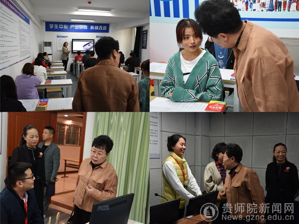 会上,贵州省普通话培训测试中心负责人、检查组副组长杨震介绍了专家组成员以及本次检查的主要目的。邓琴从基本保障、测试规范、宣传普及等三个方面就beat365普通话水平测试站的工作情况进行汇报,并提出了beat365在语言文字达标创建、普通话教学实训软硬件建设方面的规划,表达了beat365力争申报国家语言文字推广基地的期待和决心。专家组认真查看了beat365机测工作相关资料,邓琴、陈欣、郑颖以及教务处综合科科长吴娇对专家组提出的问题进行了一一解答。