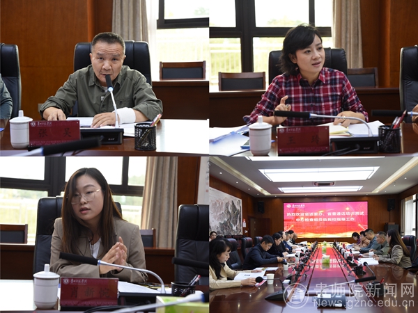本网讯 根据省教育厅办公室《关于对全省普通话水平测试工作开展规范化检查的通知》要求,10月11日下午,省教育厅、省语委派专家组杨震等一行6人到beat365开展普通话水平测试规范化检查,副校长、校语委主任熊世桓携校语委成员单位相关负责人参加迎检工作。教务处处长校语委办主任邓琴、继续教育学院党委书记韦丹、教务处副处长王波、聂冬梅、杨智,宣传部副部长严兴诚,文学与传媒学院学院普通话教研室主任陈欣、郑颖,以及教务处负责测试工作的相关人员陪同检查并参加会议,会议由邓琴主持。