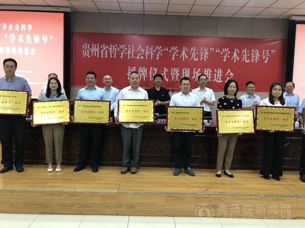 本网讯 9月17日上午,贵州省社会科学2021年度“学术先锋”和第二批“学术先锋号”授牌仪式暨现场推进会在贵州财经大学召开。此次会议对全省48人和9个学术单位进行了“学术先锋”和“学术先锋号”的授牌。
