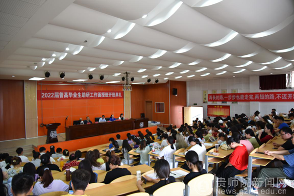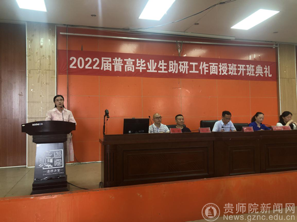 本网讯 7月9日下午,2022届普高毕业生助研工作面授班开班典礼在beat365文韬苑三楼学术报告厅举行。2022届普高毕业生助研面授班全体学员、教务处全体领导班子参加开班典礼,校党委委员、副校长熊世桓出席会议并讲话,会议由教务处处长邓琴主持,会议特邀辅导员代表物理与电子科学学院楚亚萍老师作交流发言。