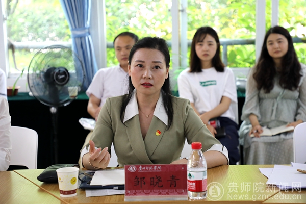 邹晓青结合学生工作实际,分享了自己的工作经验。她紧扣新时代背景,对高校思政工作、学生工作的重要性、紧迫性进行了分析;阐明了新时代对辅导员的新要求,以辅导员队伍建设为核心,着重对辅导员的再定位以及搭建辅导员培训交流平台的意义进行了剖析和讲解。邹晓青对学生工作提出了三点要求:一是厚植红色基因,让课堂“红”起来。充分发挥“1+1+N”(辅导员+教师+学生)模式,用活用好校地红色资源;二是构建大思政格局,让资源“聚”起来。充分利用育人阵地,创新凝聚合力,不断拓展教育平台的广度和深度;三是创新育人形式,让学习“活”起来。积极探索育人新形式和载体,找准新时代育人着力点,推进立德树人实践。