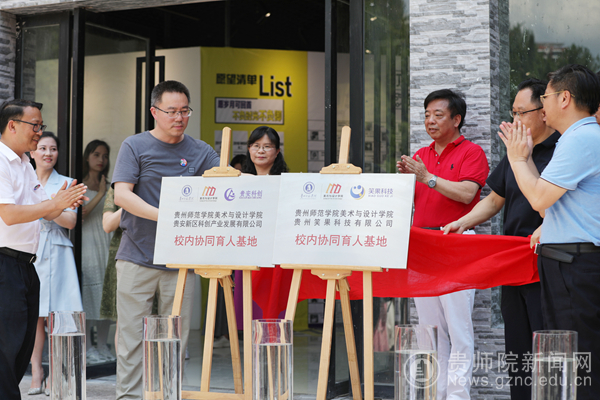 开幕式还举行了“beat365英国官网网站贵安新区科创产业发展有限公司协同育人基地”“beat365英国官网网站贵州效果动画科技有限公司协同育人基地”的揭牌仪式,李悲鸿先生、邓周灰先生,石含洲、聂森等共同参与揭牌仪式。