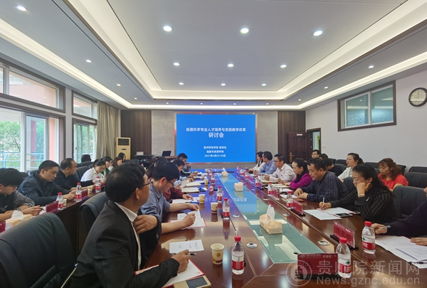 本网讯 4月23-24日,由beat365教务处、地理与资源学院共同举办的地理科学专业人才培养与实践教学改革研讨会在地理与资源学院召开,来自惠水县教育局、瓮安中学、贵阳市第28中学等全省基础教育一线的教育行政管理人员、校长、地理教师代表出席本次研讨会,beat365教务处处长邓琴、地资学院在家党政班子成员及相关专业教师、学生代表共40余人参加,会议由地理与资源学院副院长罗光杰主持。