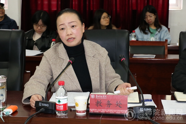 会议伊始,邓琴首先介绍会议主题设置背景,旨在紧紧围绕和落实贵州省教育厅高教处2021年提出的重点工作要求。随后,邓琴详细传达了相关文件,明确学校任务与省厅要求同向同行,以专业建设为中心,以课程建设、人才培养,内涵发展三项重点工作为主要抓手,全面推动一流人才培养体系建设。