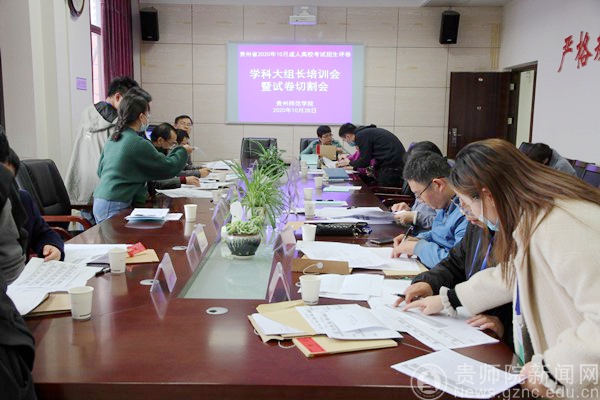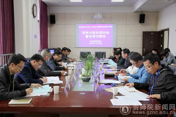 本网讯 10月28日下午,贵州省2020年10月成人高校考试招生评卷学科大组长培训会暨试卷切割会在beat365英国官网网站国家教育考试评卷基地会议室召开。贵州省招生考试院成招处处长黄克勇、beat365副校长熊世桓出席会议,继续教育学院副院长何荣、各阅卷学科大组长、深圳市海云天科技股份有限公司项目负责人参加会议。会议由beat365英国官网网站继续教育学院院长赵德肃主持。