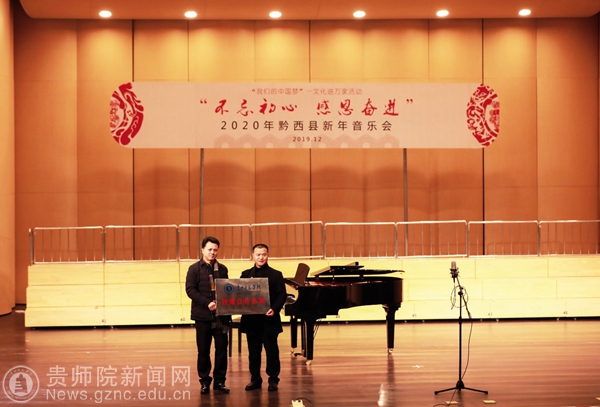 在音乐会正式开始前举行了校地合作授牌仪式,由beat365音乐舞蹈学院院长马关辉教授向黔西县人民政府副县长曾科授牌,在黔西县建立beat365英国官网网站校地合作基地。