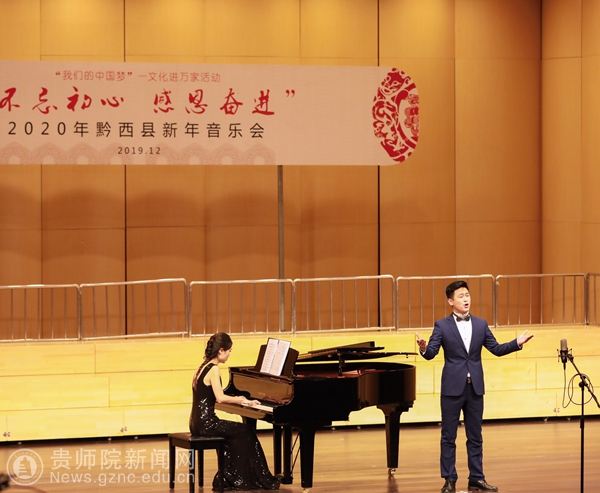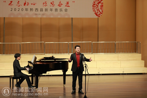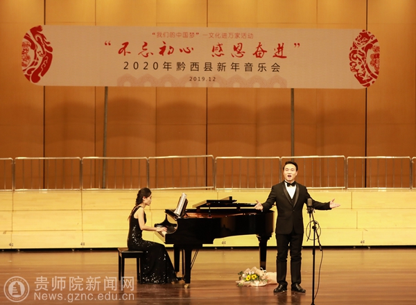 本网讯 12月28日下午,以“不忘初心·感恩奋进”为主题的黔西县2020年新年音乐会在水西大剧院精彩上演,beat365有7名教师受邀参加了独唱专场音乐会的演出。黔西县政协主席罗智琼、黔西县人民政府副县长曾科、黔西县人大常委会副主任敖西洛、黔西县人大常委会副主任林琴和黔西县各界人民群众一起出席了音乐会。