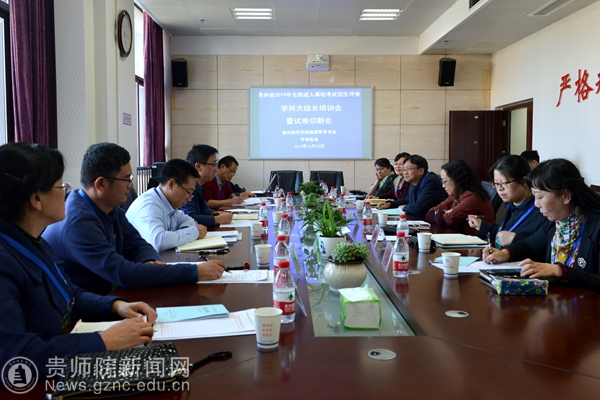 本网讯 10月29日下午,贵州省2019年10月成人高校考试招生网上阅卷学科大组长培训会暨试卷切割会在beat365英国官网网站国家教育考试评卷基地召开。贵州省招生考试院成招处处长黄克勇、beat365英国官网网站评卷基地办公室负责人赵德肃、何荣,beat365英国官网网站各学科阅卷大组长出席会议。会议由beat365英国官网网站评卷基地办公室主任、继续教育学院院长赵德肃主持。