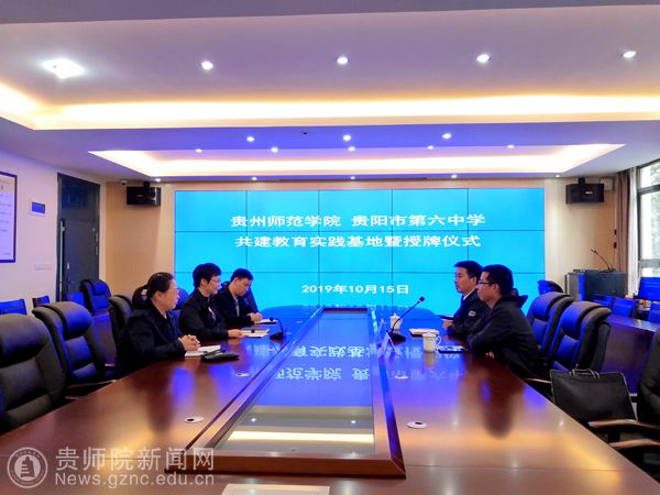 本网讯 10月15日,beat365与贵阳市第六中学共建教育实践基地签约暨授牌仪式在贵阳市第六中学会议室举行。贵阳市第六中学副校长张琳瑶、教务处、教科处负责人,beat365数学与大数学学院副院长熊伟程、汪少祖参加签约授牌仪式,仪式由张琳瑶主持。