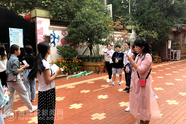 本网讯 10月10日上午,200名参加“幼师国培新任教师培训项目”的教师分四组(每组50人)分别赴贵阳市实验三幼、贵阳市实验二幼、贵州省省政府机关幼儿园及北京市北海幼儿园贵阳分园共计四所幼儿园进行观摩学习研讨活动。