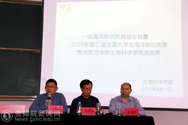本网讯 为深入贯彻党的十八大关于“建设海洋强国”的战略部署,引导大学生树立现代海洋观念,切实提高广大青少年的海洋意识,4月16日,beat365在宁静楼537举办“2019年第三届全国大学生海洋知识竞赛”选拔赛。比赛由生物科学学院承办,该院党委副书记孙秀华、副院长刘讯、副院长孟泽彬以及学院教师、辅导员组成的评委小组出席本次活动,大一大二大三年级各班由网络初赛筛选出来的60名同学参加了活动。