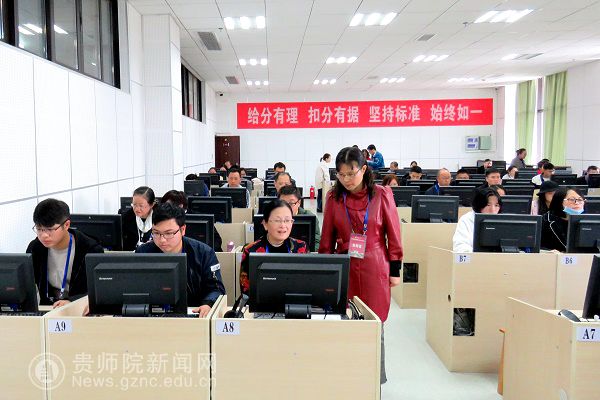 11月1日,副校长郭文在校评卷基地办公室负责人赵德肃、何荣的陪同下,到校评卷基地视察指导工作,并看望了正在进行贵州省2018年成人高校招生考试评卷工作的教师和工作人员。