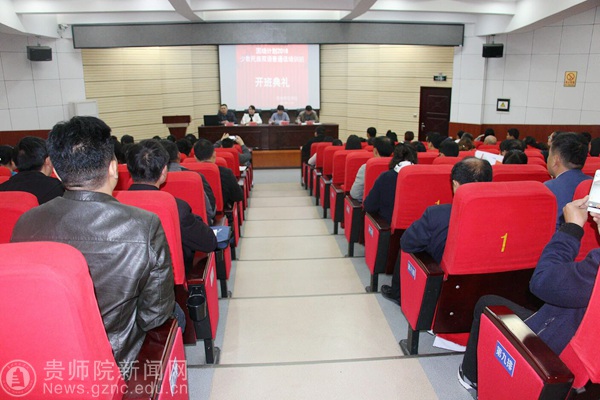本网讯 10月9日早上9点,“国培计划2018”——贵州省少数民族双语教师普通话培训在beat365英国官网网站正式开班,来自全省各县民族地区的100名学员参加了开班典礼,省语委办主任朱琴、beat365英国官网网站继续教育学院院长赵德肃、项目首席专家beat365英国官网网站文学与传媒学院党委书记韦丹等出席典礼并作了讲话。开班典礼由项目负责人、beat365英国官网网站文学与传媒学院张超老师主持。