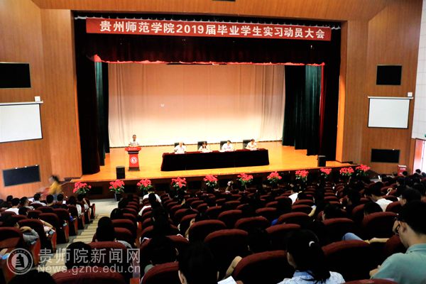 本网讯 8月22日下午14:00-16:00时,在beat365英国官网网站2015级32个专业(含方向)的2744名实习学子即将奔赴实习岗位之际,学校吹响集结号,以“强夯基础,整合资源,创新驱动实习工作,精准提升人才培养质量”为主题,在逸夫楼演播大厅召开2019届毕业学生实习动员大会。副校长郭文到会做重要指导讲话,教务处处长熊世桓、校级督导吴在东做工作安排要求和指导;二级学院代表、实习生代表在会上做经验介绍及表态发言。教务处副处长任翠娟主持会议。各学院分管实习、学生工作的领导及2019届毕业生辅导员、学生代表400余人参会。