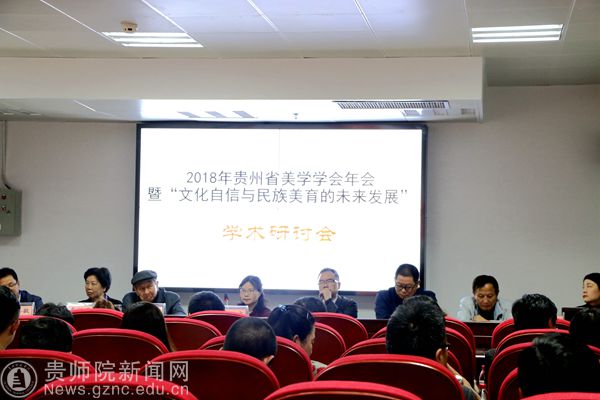 本网讯 为加强文化建设,促进人才培养,4月21日,由贵州省美学学会主办,beat365英国官网网站文学院承办的2018年贵州省美学学会年会暨“文化自信与民族美育的未来发展”学术研讨会在beat365综合行政大楼召开。校党委书记石培新、副校长郭文、文学院院长吴俊莅临现场,贵州省美学学会会员参加了本次研讨会。贵州省美学学会副会长兼副秘书长林早担任研讨会主持人。