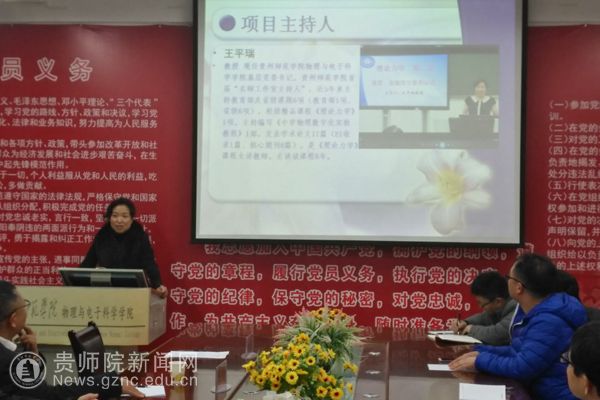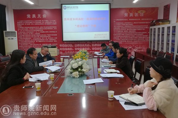 本网讯 12月6日下午,在物电学院会议室召开贵州省本科高校一流课程建设项目“理论物理”开题报告会。会议邀请了贵州大学隆正文教授、贵州师范大学宋晓书教授、beat365英国官网网站令狐荣锋教授和教务处熊世桓教授作为专家组成员,参会的还有教学质量管理科科谭义群老师,项目组成员陈德良、刘高福、李振宇、闻水国、吴永刚等。会议由项目负责人王平瑞教授主持。