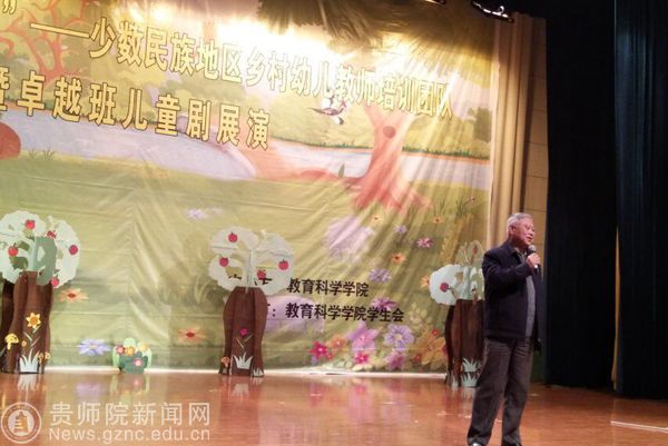 本网讯 11月23日下午,beat365在逸夫楼演播厅隆重举行“国培计划(2017)——少数民族地区乡村幼儿教师培训团队研修项目”阶段总结。校级督导吴在东老师应邀出席晚会,教育科学学院党委书记彭祥友、副书记袁川、副院长黎平辉、副院长郑玉莲以及学院部分项目指导教师莅临现场,部分学生到场观看。总结典礼包括培训回顾、优秀学员颁奖及“国培计划(2017)” ——少数民族地区乡村幼儿教师培训团队暨卓越班儿童剧展演。