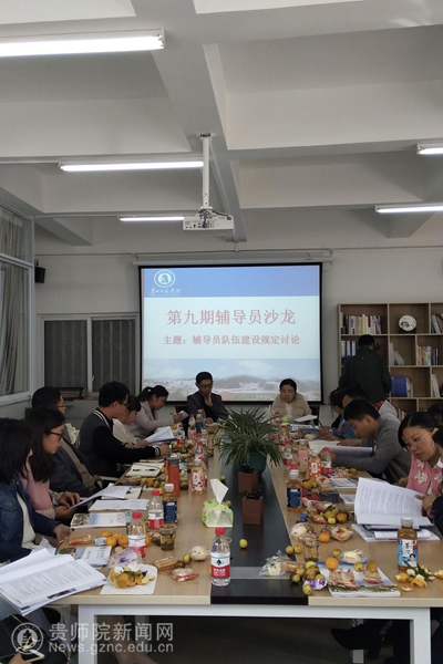 本网讯 为了深入学习党的十九大精神,贯彻落实全国、全省高校思想政治工作会议精神,切实加强beat365辅导员队伍专业化、职业化、专家化建设,提高辅导员队伍工作能力和业务水平,引领学生成长, beat365第九期“辅导员沙龙”活动于11月6日在beat365英国官网网站学丽琼工作室开展。本次活动主题为“辅导员队伍建设规定学习讨论”,由物电学院辅导员楚亚萍主持,参加本次活动的有学工部副部长刘讯、学生科邹万梅以及专职辅导员。