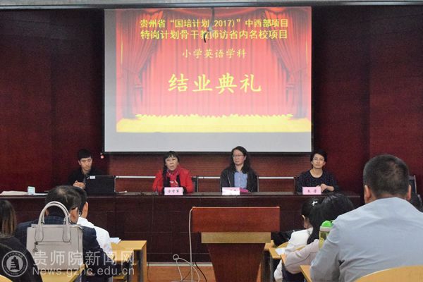 本次“国培计划”——贵州省特岗计划骨干教师访省内名校项目英语学科培训班共培训小学教师九十七人。在培训期间,项目通过专题讲座、小组研讨、案例分享、参与式学习、专家指导、跟岗实践、“工作坊”等方式,为学员们带来的一系列精彩纷呈的讲座与活动,圆满完成了本次项目培训工作。