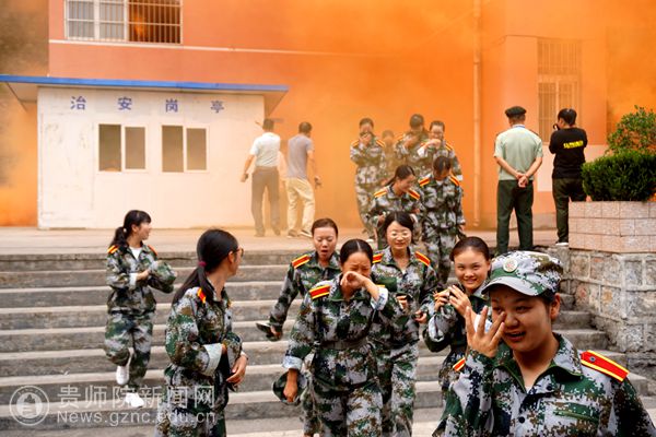 女生逃生演练现场