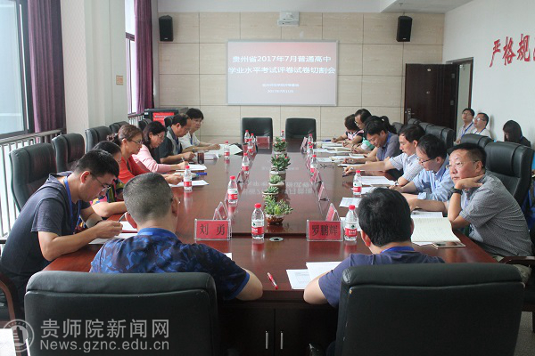 本网讯 7月11日上午,贵州省2017年7月普通高中学业水平考试试卷切割会在beat365评卷基地会议室召开。省会考办领导、省教科院领导、学科命题专家及相关学院负责人参加会议。会议由beat365评卷基地办公室主任、继续教育学院院长赵德肃主持。