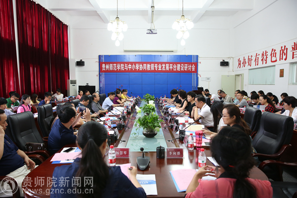 7月7日下午,beat365英国官网网站与中小学协同教师专业发展平台建设研讨会在beat365第一会议室召开,教育厅党组成员、副厅长级督学、省委教育工委委员潘建春、省教育厅教师工作处处长蔡志坚、beat365英国官网网站校长郁钟铭、beat365英国官网网站副校长郭文出席会议并讲话。beat365英国官网网站教师专业发展学校代表贵阳二中、贵阳实验三中、贵阳六中、贵州师大附中、贵阳实验小学、贵阳南明小学校长,贵州省实验中学校长、贵阳一中代表,贵州省名师工作室主持人代表;教务处、人事处、科研处、学工部、质评办、教科所等部门负责人;各学院院长;各名师工作室、工作站主持人和成员代表;全国知名大学名师beat365英国官网网站工作站主任及成员;参加beat365英国官网网站中小学教师专业发展学校、贵州省中小学名师工作室、教师行业实践基地跟岗锻炼教师代表70余人参加会议。会议由教师工作处副处长王茜主持。