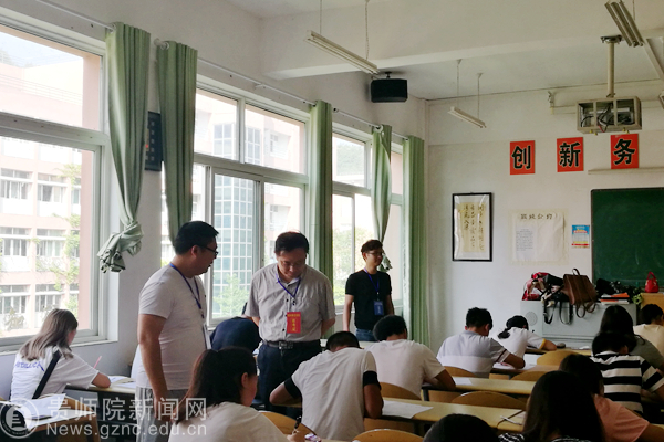 本网讯 7月4日,副校长令狐荣锋在教务处副处长刘宪帮、马列部副主任秦红平、历社学院副书记吴靖霞的陪同下,对beat365逸夫楼各考场进行期末考试巡考工作。