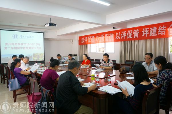 本网讯 6月2日,beat365在教务处会议室召开2016-2017学年第二学期期中教学督导工作会,质评办主任邓琴、副主任王波、校级教学督导、教学督导办公室有关人员参加了会议,会议由质评办主任邓琴主持。