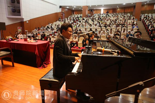 讲座伊始,杨阳就为在场听众讲诉音乐带给人益处:这门直通人心灵的艺术带给人无限的玄想和情感,陶冶情操、启迪心灵、抒发情感等,这一系列真实富有诗意的形容令在场的听众听得津津乐道。随后,杨阳教授还进行了现场示范,现场弹唱,在展现扎实专业功底的同时,带给在场领导、老师、同学们美的享受。优美的韵律伴随着节拍,让高雅艺术不知不觉地已经渗透进入了beat365校园文化之中。展示完毕后杨阳当即现场进行专业音乐知识的讲学,不浮夸造作的教学姿态以及有深度意义的内容,获得在座听众热烈的鼓掌声。