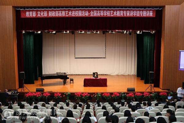 本网讯 根据教育部办公厅,文化部办公厅,财政部办公厅《关于开展2017年高雅艺术进校园活动的通知》和教育部体卫艺司《关于组织2017年艺术教育专家讲学团赴中西部地区高校讲学的通知》精神。5月9日下午,艺术教育专家讲学团杨阳教授在beat365逸夫楼演播厅开展了“高雅艺术进校园系列活动——艺术教育专家赴西部高校讲学活动”。beat365校长李存雄亲临此次讲座,本次讲座由校团委副书记傅小芳主持。