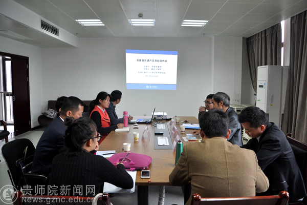 报告会上,李锦平教授从“文化”、“民族”、“少数民族”、“非物质文化遗产”等几个基本概念入手,对贵州丰富多彩的非物质文化遗产名录进行了总体阐述,重点介绍了以苗族音乐为代表非物质文化遗产的历史与现状。他指出,由于种种原因,这些独特的非物质文化遗产却面临濒危,亟需社会各界力量的介入,对其进行抢救、保护与研究。最后,李锦平教授根据自己多年的实践经验总结出了以下四点保护非遗的措施:一是编著出版教材读物;二是举办各种文化内容的培训班;三是组织各种比赛;四是民族文化进校园。
